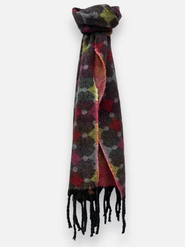 Envie de mettre une touche de peps et de bonne humeur dans la grisaille de l'hiver ? L'écharpe Bonbon est l'accessoire qu'il vous faut ! C'est une véritable explosion de couleurs vives, un concentré de joie de vivre qui illuminera instantanément votre visage et votre tenue. Ce qui la rend encore plus géniale, c'est qu'elle est entièrement réversible ! D'un côté, un motif graphique coloré, et de l'autre, un design différent mais tout aussi vibrant. Vous avez donc deux écharpes en une, pour deux fois plus de possibilités de looks. Ses dimensions généreuses vous permettent de vous emmitoufler dedans comme dans un plaid douillet. Vous pouvez la nouer de mille et une façons, la laisser pendre nonchalamment pour montrer ses deux faces, ou même la ceinturer sur un pull pour un effet poncho ultra stylé. C'est une pièce forte qui transformera la plus simple des tenues.