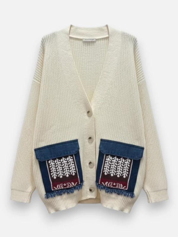 Vous cherchez LA pièce unique qui fera toute la différence dans votre garde-robe ? Ne cherchez plus, le gilet Eliote est un véritable trésor de créativité ! Ce n'est pas un simple gilet, c'est une déclaration de style. Dès le premier regard, on est séduit par son originalité : un tricot épais et chaud aux motifs colorés, rehaussé de détails qui tuent. Imaginez ces doubles poches si pratiques et stylées, mêlant le tricot et le jean, le tout agrémenté de petites franges pour la touche bohème. En le portant, vous ne passerez pas inaperçue. Vous vous sentirez audacieuse, affirmée, avec un look qui raconte une histoire. C'est la pièce parfaite pour celles qui aiment sortir du lot.