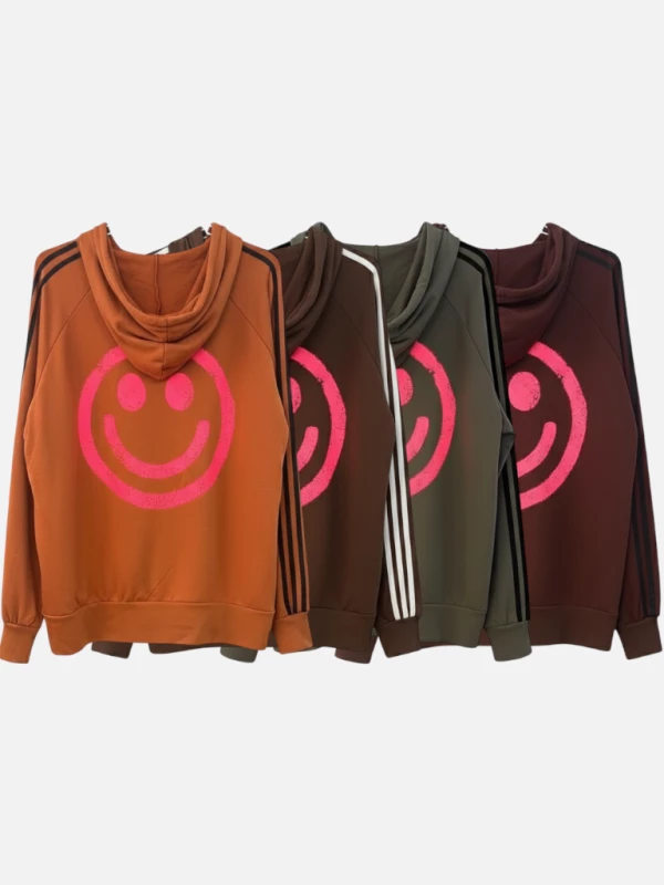 Et si votre gilet devenait un vecteur de positivité ? C'est toute la promesse de cette pièce incroyable, une véritable "veste positive" comme nous aimons l'appeler ! Avec son esprit sportswear assumé, elle revisite les codes du vintage et du bohème pour un résultat unique. Sa matière 100% coton la rend agréable à porter en toute saison. Mais le détail qui change tout, c'est son dos magique : un grand "Smile" en rose fluo qui attire le regard et donne instantanément le sourire. Cette veste est une vraie "dinguerie", une pièce forte qui structure une silhouette et affirme un style. Elle prouve qu'on peut être à l'aise sans jamais sacrifier son allure, bien au contraire ! C'est la veste parfaite pour celles qui aiment les vêtements qui racontent une histoire et qui diffusent de bonnes ondes.