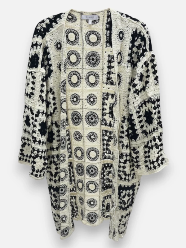 Vous cherchez la pièce qui saura finaliser vos looks avec une touche d'originalité et de légèreté ? Le gilet Kalisto est un véritable bijou textile. Entièrement réalisé en broderie ajourée dans des tons de noir et crème, il apporte instantanément une dimension bohème et chic à n'importe quelle tenue. Sa matière légère le rend très facile à porter en superposition, que ce soit sur une chemise, une robe ou un simple top. Vous vous sentirez unique et stylée, grâce à ce gilet qui se démarque par son travail de broderie délicat. Ses manches trois-quarts et sa coupe ouverte en font un allié parfait pour toutes les saisons.