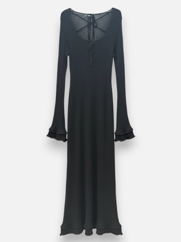 Description : Robe moulante en maille côtelée, la pièce sexy et élégante avec son dos nu lacé spectaculaire.