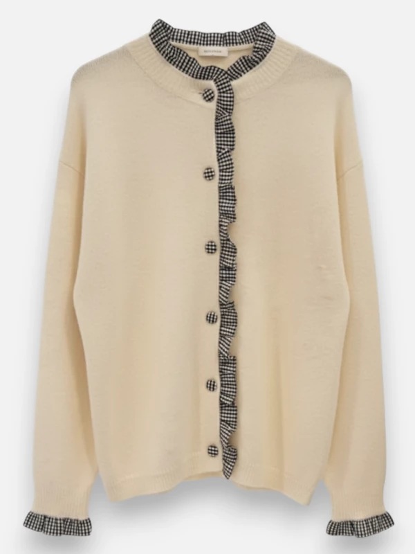 À la recherche d'une pièce à la fois sage, chic et terriblement confortable ? Le gilet Magali est un véritable bijou de douceur et d'élégance. Porté comme un pull, à même la peau, sa matière contenant de la laine est d'une douceur incroyable et ne pique absolument pas. Ce qui fait tout son charme, ce sont ses détails raffinés : le petit col Claudine et les poignets sont habillés d'un adorable tissu à carreaux vichy marron et blanc, un détail repris sur les boutons délicatement recouverts. En l'enfilant, vous vous sentirez immédiatement élégante et soignée, avec ce petit côté preppy intemporel. C'est la pièce parfaite pour un look de bureau ou une sortie où vous souhaitez être chic sans effort.