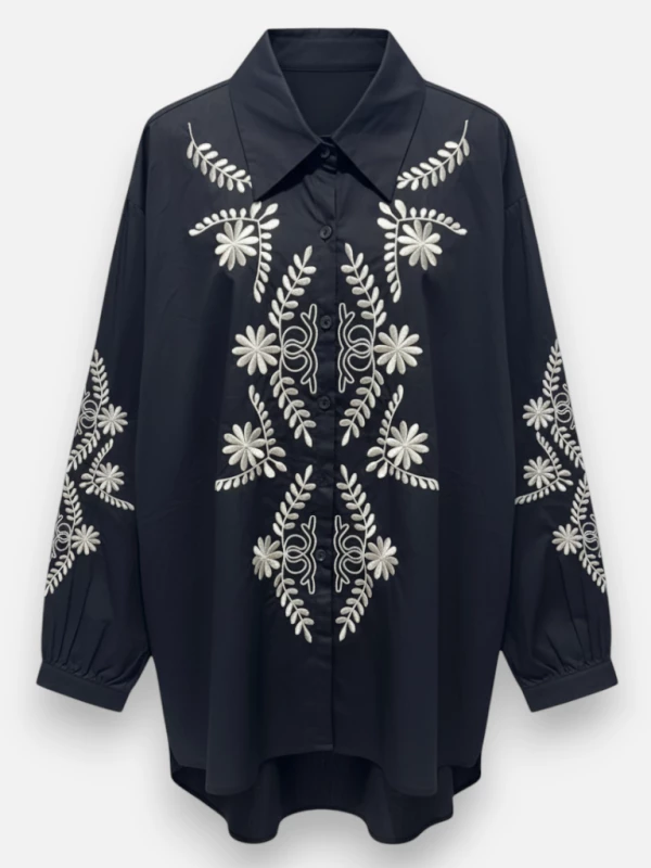 Osez affirmer votre style avec une pièce audacieuse et incroyablement chic ! La chemise Sand est un véritable coup de cœur, avec son imprimé graphique noir et crème qui évoque l'univers luxueux des grands créateurs. Sa coupe oversize la rend ultra confortable et moderne, tandis que sa matière fluide caresse la peau et offre un tombé impeccable. Vous vous sentirez à la fois puissante et élégante. Le grand col chemise et les manches boules structurées par de petites pinces ajoutent du caractère, tandis que les détails des boutons ornés d'un petit strass apportent la touche finale de raffinement. C'est la chemise parfaite pour celles qui n'ont pas peur de se démarquer.