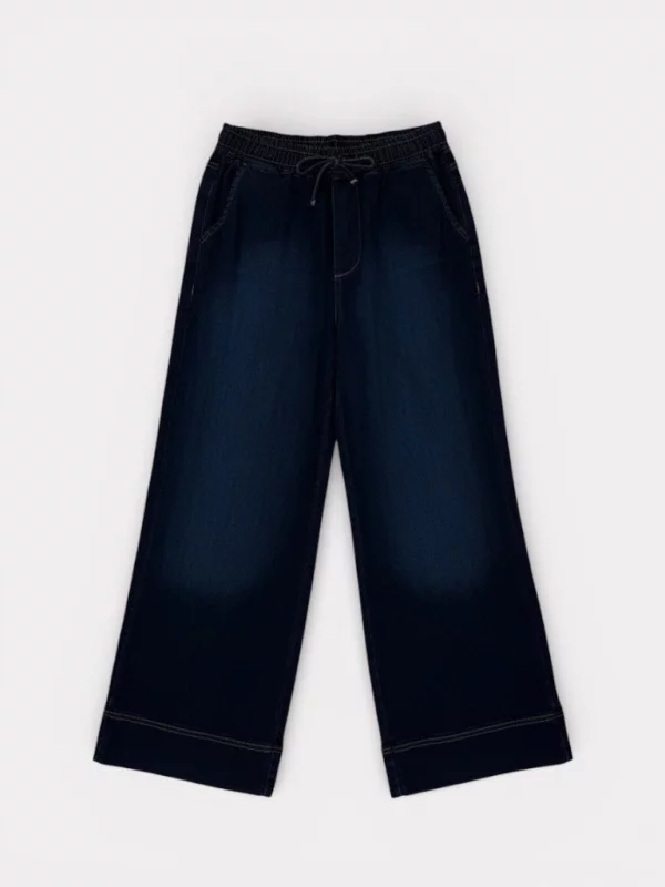Description : Jean large tendance avec taille élastiquée, la pièce confortable et stylée pour une silhouette moderne.