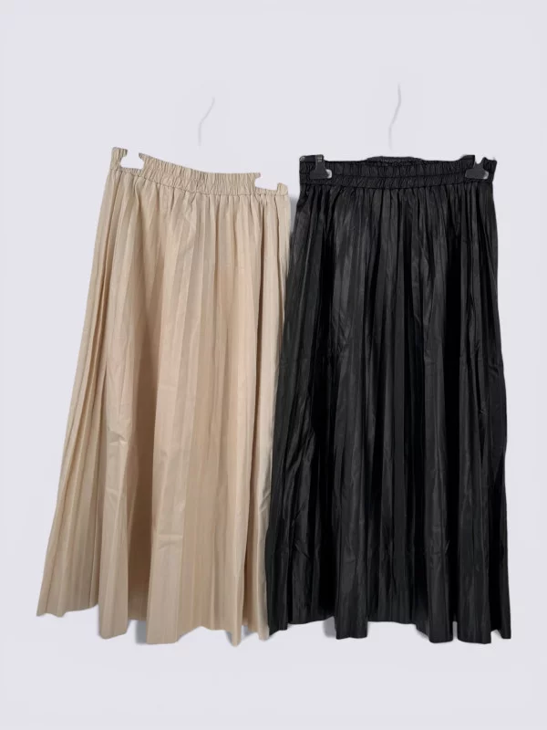 Description : La jupe plissée en simili-cuir, une pièce intemporelle pour un style affirmé et féminin.