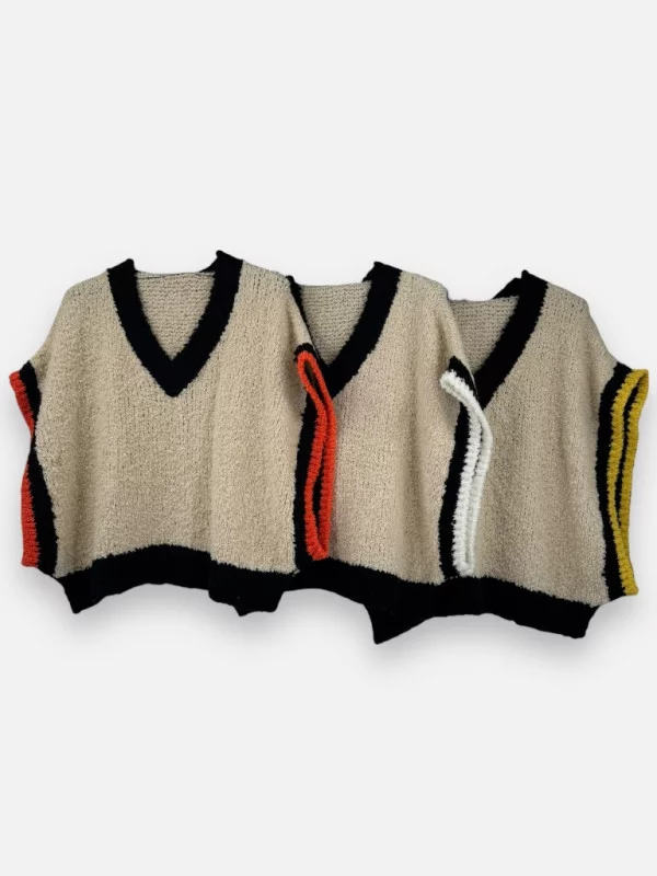 C'est notre coup de cœur de la saison chez Mona-Dress ! Le pull Alméa est un pull débardeur astucieux qui va révolutionner votre façon de vous habiller. Sa maille bouclette, à l'aspect laine bouillie, est d'une douceur extrême grâce à sa composition riche en laine et en alpaga. L'astuce mode ? Ses larges emmanchures permettent de le glisser sans aucune gêne sur un autre pull à grandes manches ou une chemise, sans que rien ne remonte. Il tient chaud tout en restant ultra stylé. On l'adore porté sur une chemise blanche pour un look complice et expert. Disponible en jaune, orange ou blanc, il s'adapte à toutes vos envies de peps pour bien démarrer l'année. Une pièce confort qui va du 36 au 48 !