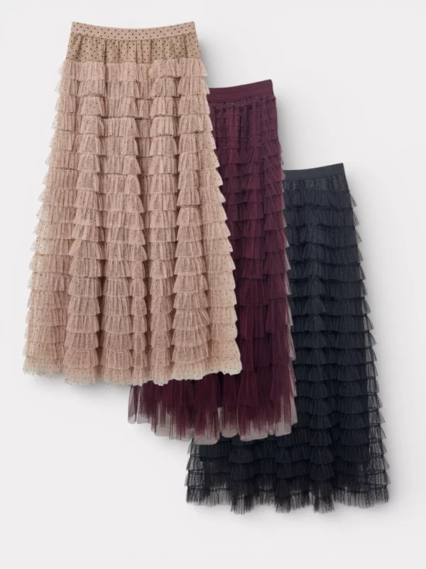 Description : Jupe en tulle aérienne ornée de délicats petits pois pour un style romantique.