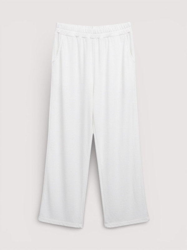 Découvrez le Pantalon Joula, une véritable caresse pour vos jambes ! Sa composition unique mélangeant coton et laine en fait une pièce à la fois chaude, légère et incroyablement douce. Sa fluidité est spectaculaire : il accompagne vos mouvements avec une élégance rare. D'une jolie couleur ivoire (ou blanc cassé), il possède un intérieur effet 'tout doux' pour un confort thermique optimal. Sa coupe large et élastiquée à la taille permet de se sentir libre tout en restant stylée. Nous vous conseillons de le porter avec des sous-vêtements chair pour une discrétion totale. C'est le pantalon idéal pour un look 'homewear chic' ou pour une sortie décontractée avec de grosses boots. Il sublime les tailles 36 à 44/46.