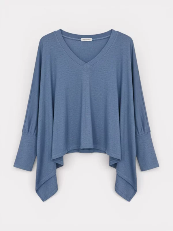 Le Haut No est la définition même du style décalé et moderne. Ce top 'banger' à la coupe déstructurée, rappelant l'esprit poncho revisité, est une pièce forte de votre dressing. Sa couleur bleu jean délavé est ultra-facile à marier. Ce qu'on aime par-dessus tout, c'est sa grande ammanchure sur les côtés qui permet des jeux de superposition infinis : portez-le sur un pull fin, un col roulé ou une chemise à manches travaillées. Il convient aussi bien aux petites tailles qu'aux plus généreuses grâce à sa forme libre. C'est le vêtement idéal pour celles qui aiment la mode 'oversize' architecturale et qui veulent une tenue confortable sans sacrifier le style. Une exclusivité très limitée !