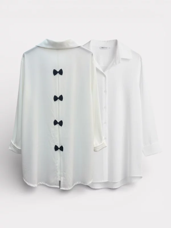 Bienvenue dans l'univers du chic sans effort avec notre chemise NoeudAmour, une véritable pépite pour votre garde-robe. Sa matière en crêpe lourd offre un tombé absolument impeccable qui flatte toutes les silhouettes du 38 au 48. Le grand plus ? Elle ne se froisse pas ! On la lave, on la sèche et on l'enfile directement, un vrai bonheur pour les matins pressés. Son style intemporel, disponible en noir ou blanc, en fait une base parfaite pour vos tenues les plus sophistiquées. Pour un conseil look Mona-Dress, portez-la avec un legging et accessoirisez-la avec nos petites cravates foulards pour un effet working-girl moderne et plein de peps. C’est le basique indispensable avec cette petite pointe de fun qui fait toute la différence.
