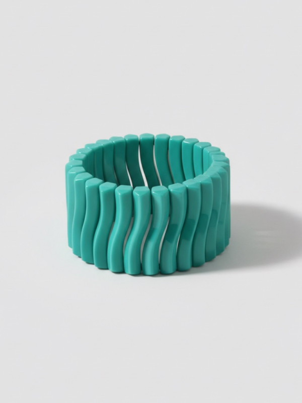 Plongez dans les eaux cristallines avec le bracelet Lagon ! Cet accessoire est un véritable concentré de fraîcheur et de luminosité. Fabriqué en résine synthétique de haute qualité, il imite à la perfection les nuances apaisantes du turquoise. Sa structure montée sur un élastique robuste le rend extrêmement pratique à enfiler et à retirer, s'adaptant à toutes les tailles de poignet avec douceur. C'est l'élément parfait pour réaliser des superpositions de bracelets, une tendance que Mona adore mettre en avant lors de nos lives shopping. Portez-le seul pour une touche de couleur discrète ou mélangez-le avec d'autres pièces de la collection pour un effet accumulation ultra tendance. Pour seulement 10 euros, il offre un rapport qualité-prix imbattable et une résistance à toute épreuve. Il ne contient pas de pierres naturelles, mais sa finition brillante et sa couleur éclatante en font un bijou fantaisie de premier choix qui ravira toutes les amatrices de tons bleutés.