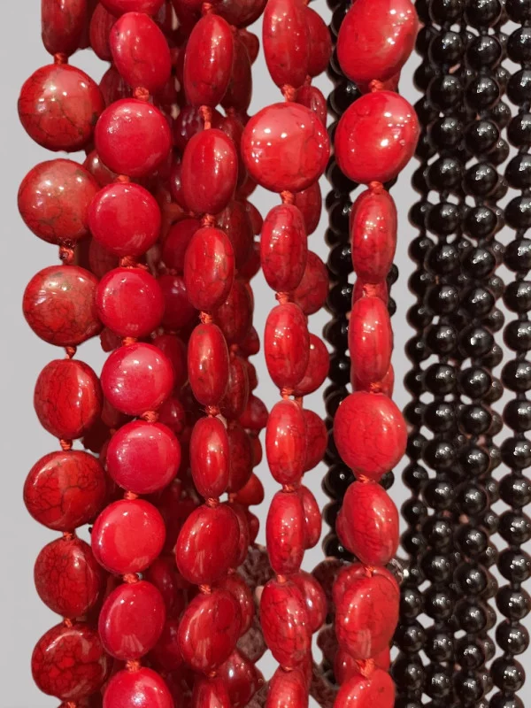 Succombez à la gourmandise du collier Dragée ! Ce bijou original semble tout droit sorti d'une confiserie avec ses pierres naturelles polies qui ressemblent à de petits smarties. Pour seulement 10 euros, c'est l'accessoire idéal pour pimenter votre look à moindre coût. Il est extrêmement agréable au toucher et apporte une note de fraîcheur et de fun immédiate. Disponible dans un rouge vibrant, il ressortira magnifiquement sur du blanc, du noir ou même du chocolat. L'experte Mona-Dress vous suggère de le porter sur une chemise blanche déboutonnée pour un contraste moderne. C'est le petit plaisir coupable qui booste n'importe quelle tenue basique. Ne choisissez plus entre élégance et fantaisie, le collier Dragée réunit les deux !