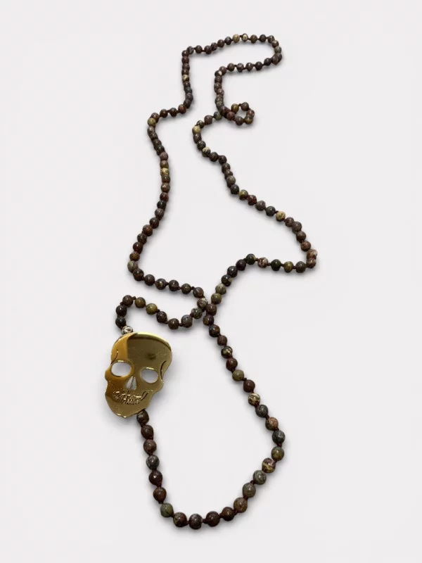 Affirmez votre style avec le Collier Bad ! Ce bijou au caractère affirmé se distingue par ses perles aux pierres patinées, offrant un aspect vintage et sophistiqué. Le véritable plus de ce collier est son pendentif tête de mort qui est en réalité une broche amovible. Vous pouvez donc choisir de la laisser sur le collier pour un look total rock, ou de l'enlever pour la fixer sur un revers de veste, un chemisier ou même un bonnet. C'est un accessoire deux-en-un qui s'adapte à vos envies. Porté seul ou en accumulation avec d'autres bijoux, il apporte immédiatement du caractère à un ensemble simple. Les finitions sont soignées et les reflets des pierres changent subtilement selon la lumière.