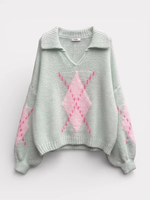 Un pull tout doux aux couleurs pastel et détails contrastés.
