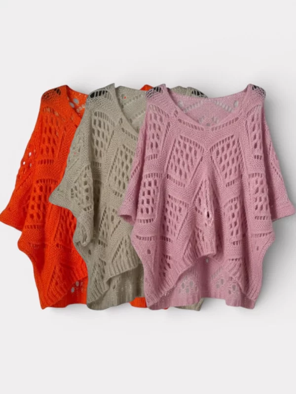 Le pull Néroli est un véritable hommage au savoir-faire artisanal avec son magnifique travail de maille façon crochet. Sa texture est incroyablement douce et agréable, offrant un confort thermique idéal pour la mi-saison. Proposé en rose poudré, beige intemporel ou orange vitaminé, il présente des motifs ajourés sophistiqués qui laissent deviner la peau avec subtilité. Vous pouvez le porter seul pour un look sexy-lady ou sur une chemise pour un style plus sage. Sa coupe généreuse permet de l'arborer fièrement jusqu'à la taille 50. C'est une pièce lumineuse qui redonne du peps à n'importe quel basique, que ce soit un jean ou un pantalon plus classique, tout en restant dans une tendance bohème très actuelle.