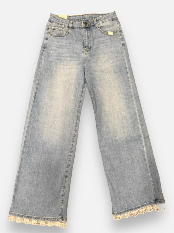 Le jeans Baby Blue, le denim romantique avec sa finition dentelle délicate.