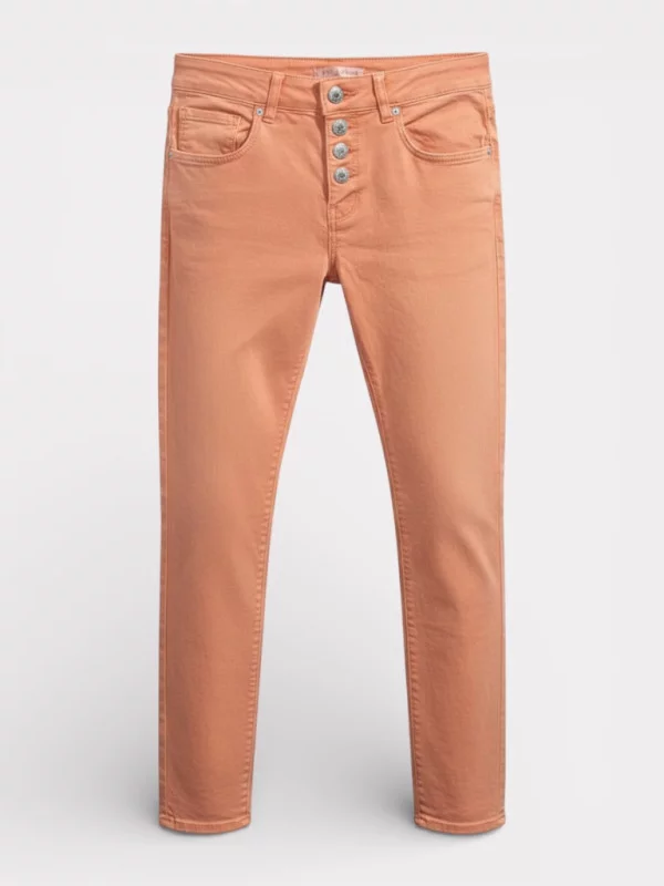 Le Jeans Zoé est le pantalon magique par excellence. Grâce à sa coupe push-up et ses coutures savamment placées, il galbe le fessier et affine la jambe instantanément. Sa toile ultra stretch offre un confort digne d'un legging tout en gardant l'aspect d'un pantalon de toile élégant. Disponible dans des coloris de saison comme le kaki, l'orange pétant ou le corail, il est parfait pour dynamiser vos looks printaniers. Sa coupe slim s'adapte à toutes les chaussures, des boots rock aux baskets légères. C'est le basique revisité avec une touche de couleur et une technologie galbante dont vous ne pourrez plus vous passer !