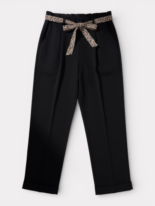 Le Pantalon Lison est une pure nouveauté qui va révolutionner votre confort. Sa matière est incroyable : un mélange de coton et de nylon avec beaucoup d'élastane qui lui donne un aspect 'techno-stretch' hyper qualitatif. Il n'y a pas de braguette, il s'enfile comme un legging mais garde la tenue d'un vrai pantalon habillé. Le détail mode ? Son petit lacet de serrage à l'imprimé panthère à la taille. Il possède une coupe droite et longue (vous pouvez faire un revers si besoin) et un tombé impeccable qui ne marque rien. Il convient parfaitement du 40 au 48. C'est la pièce parfaite pour être stylée sans jamais se sentir serrée.