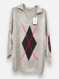 Le Pull Infini est un hommage à la nostalgie chic des années 90, avec son col polo élégant et ses motifs de losanges. Sa matière à base de viscose et polyamide est d'une douceur absolue et ne pique absolument pas la peau. Ce pull grande taille a été pensé pour le confort, allant du 42 jusqu'au 50 sans marquer les formes. On le retrouve dans des coloris frais comme le turquoise, le rose, le bleu ciel ou un magnifique beige taupe très classe. C'est le genre de pièce 'easy chic' qui se suffit à elle-même : glissez-le sur un jean ou un pantalon fluide et vous êtes prête ! Sa coupe généreuse permet de rester à l'aise tout au long de la journée. Attention, c'est une édition limitée avec très peu de pièces par couleur !