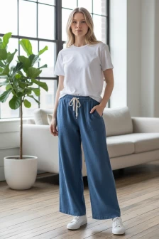 Le Pantalon Kylie est la révélation de notre direct ! Ce pantalon à la coupe large et fluide est un pur bonheur à porter au quotidien. Son grand atout ? Son système de réglage à la taille par cordage qui lui permet de s'adapter parfaitement du 36 jusqu'au 48. Comme l'a précisé Nadia lors de l'essayage, il offre une aisance incroyable sans sacrifier le style. Sa matière légère et aérienne suit vos mouvements avec élégance. Disponible dans des teintes neutres et faciles à marier, il se porte aussi bien avec des baskets pour un look urbain qu'avec des bottines pour une silhouette plus élancée. Durant le live, nous l'avons associé à notre gilet en maille pour un ensemble 'homewear chic' absolument canon. À 39 euros, c'est la pièce basique et tendance à avoir absolument dans son dressing. Il flatte toutes les morphologies grâce à sa taille ajustable et sa jambe large. Un pantalon 'feel good' qui vous fera vous sentir belle et libre tout au long de la journée.