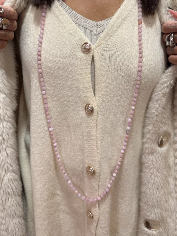 Le Collier Perla Rose est une invitation à la tendresse. Fabriqué à partir de pierres naturelles sélectionnées pour leur nuance de rose délicate, ce bijou apporte une touche de fraîcheur et de lumière à votre visage. Chaque perle est unique, donnant au collier un aspect artisanal et précieux. À seulement 10 euros, c'est une opportunité exceptionnelle d'acquérir un bijou en matières naturelles. Il est parfait pour adoucir une tenue sombre ou pour compléter un look pastel. Sa longueur est idéale pour être porté au quotidien. C'est le petit bijou bien-être qui vous accompagnera partout, alliant les vertus des pierres naturelles au style incomparable de Mona-Dress.