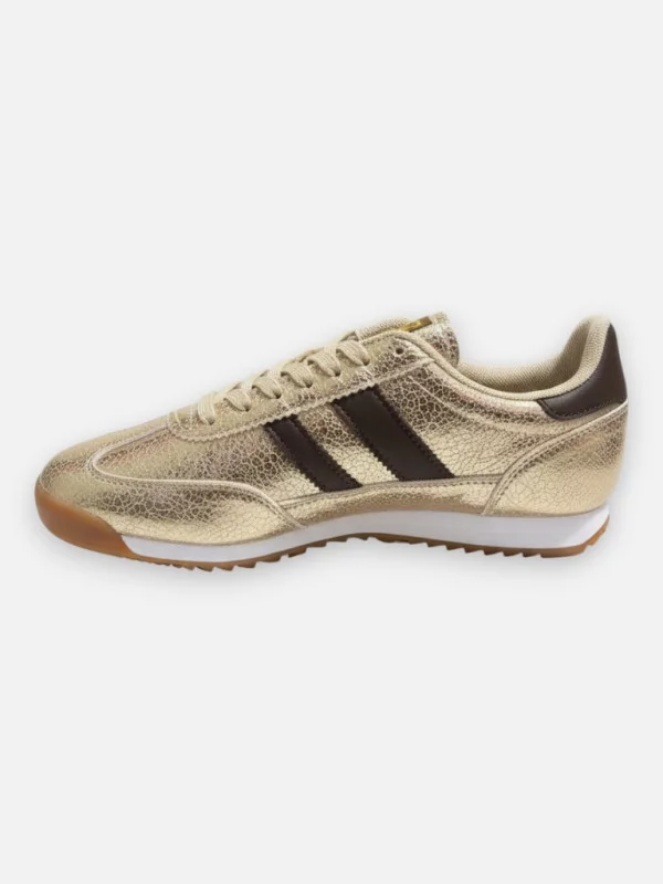Les Baskets Echo sont le compromis idéal entre confort absolu et style éclatant. Dotées d'une semelle en gomme souple, elles sont particulièrement recommandées pour les pieds sensibles (confortables même pour les hallux valgus). Le design se distingue par une bande latérale en simili-cuir et un liseré brillant qui court tout le long de la chaussure. Disponibles en versions dorée ou argentée, elles capturent la lumière à chaque pas. Nadia les a présentées comme l'accessoire parfait pour réveiller un jean brut ou accompagner le pantalon Belinda. C'est la paire de sneakers lumineuse qui apporte cette touche 'couture' indispensable à votre quotidien.