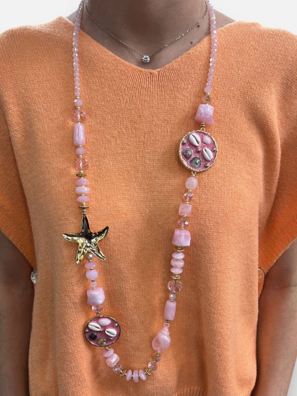 Le collier Elena est l'accessoire 'peps' de cette saison ! Avec son magnifique pendentif en forme de coquillage rose vibrant, il apporte instantanément une touche solaire et estivale à vos tenues. C'est un bijou qui évoque le surf, la plage et la liberté. Son design audacieux et coloré est parfait pour égayer une tenue sobre ou compléter un look bohème. Léger et facile à porter, il se pose délicatement sur votre décolleté. On l'imagine déjà porté sur une petite robe blanche ou une tunique en lin lors de vos prochaines escapades. C'est une pièce qui attire l'œil et suscite les compliments. À seulement 25 euros, c'est le petit plaisir idéal pour se sentir déjà un peu en été. Faites souffler un vent marin sur votre style avec cette nouveauté irrésistible de notre collection bijoux !