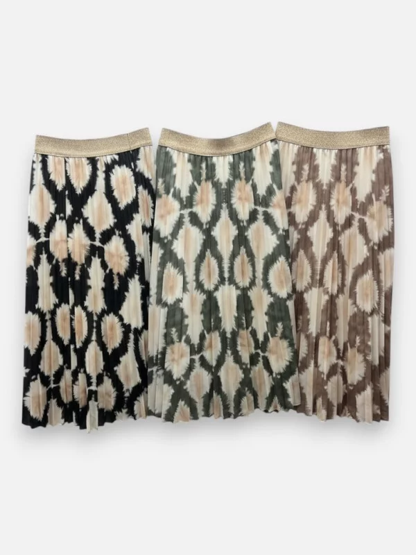 Rencontrez Stéphanie, notre nouvelle jupe au caractère bien trempé ! Cette pièce se démarque par son imprimé "artistique", comme si des coups de pinceau avaient été déposés délicatement sur le tissu, créant un motif tacheté ultra-moderne et original. Sa ceinture élastique entièrement dorée et pailletée souligne la taille avec éclat et garantit un confort optimal tout au long de la journée. Disponible en kaki, noir ou taupe, elle est soigneusement doublée pour éviter toute transparence et assurer un tombé impeccable. C'est une jupe polyvalente que vous pouvez porter dès maintenant avec des baskets ou plus tard avec des sandales compensées. Elle apporte une touche de peps et d'originalité à n'importe quel haut uni, comme une chemise Amélie. Un véritable coup de cœur artistique pour celles qui aiment se démarquer avec élégance et une pointe de fantaisie.