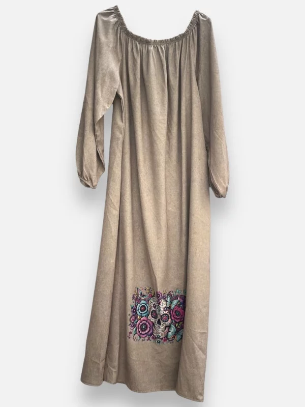 Cette robe ne sera pas une 'prise de tête' pour votre look, bien au contraire ! Issue de la nouvelle collection Mona-Dress, elle est proposée à un prix exceptionnel de 39 euros. Le motif tête de mort (TDM), positionné avec élégance sur le bas, apporte une touche rebelle tout en restant chic. Sa coupe généreuse permet de sublimer toutes les morphologies, allant sans problème jusqu'à la taille 48-50. La matière technique sélectionnée par Mona est un pur bonheur : elle est fluide, extensible et surtout, elle ne nécessite aucun repassage ! C'est la robe idéale pour les femmes actives qui veulent être impeccables en un clin d'œil. Portez-la avec des bottines pour un style rock ou des baskets pour une journée décontractée. Sa fluidité accompagne chacun de vos mouvements avec une grâce incroyable, faisant d'elle une valeur sûre de votre garde-robe.