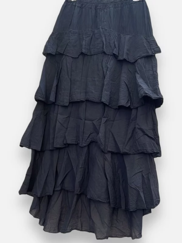 Succombez au charme du jupon Goya, une nouveaute qui apporte une touche de magie a votre garde-robe. Ce jupon en 100% coton est d'une qualite exceptionnelle, a la fois vaporeux et parfaitement structure. Sa coupe est unique : il est legerement plus court sur le devant et s'allonge a l'arriere, creant un mouvement magnifique a chaque pas. C'est la piece boheme par excellence ! Il est disponible en ecru, une couleur lumineuse qui s'associe facilement, mais attention les filles, prevoyez des sous-vetements couleur chair pour eviter la transparence. La taille elastiquee s'adapte confortablement du 34 au 40, voire un petit 42 selon votre morphologie. Il se marie a merveille avec des bottes pour un style folk ou avec des petites sandales pour l'ete. C'est un modele fluide et leger qui vous fera vous sentir belle et elegante tout en restant decontractee.