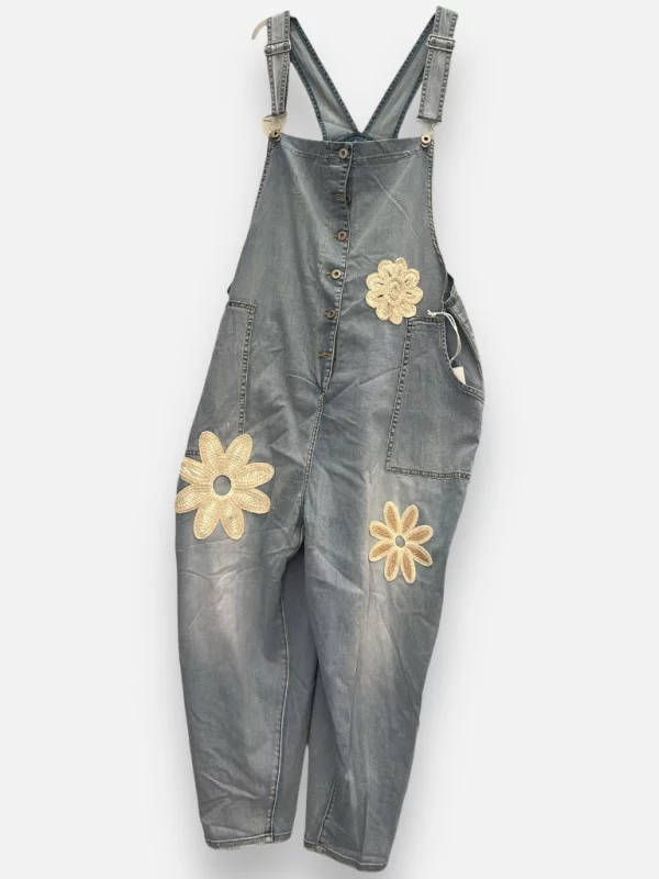 Craquez pour la poésie de notre combinaison brodée, une pièce forte qui ne laissera personne indifférent ! Cette salopette est un véritable jardin de coton, ornée de magnifiques broderies de fleurs qui lui donnent un charme fou et une allure printanière irrésistible. Sa coupe est étudiée pour flatter la silhouette tout en offrant une aisance parfaite, convenant du 36 au 42. Les détails des broderies marguerites apportent un relief et une texture haut de gamme à l'ensemble. Pour un look complet et harmonieux, n'hésitez pas à l'associer à sa veste assortie, créant ainsi un ensemble coordonné digne des plus grands défilés. Portée avec un simple t-shirt beige en dessous, elle devient la pièce centrale d'un look frais, féminin et résolument moderne. C'est l'investissement mode par excellence pour briller lors de vos événements ensoleillés.