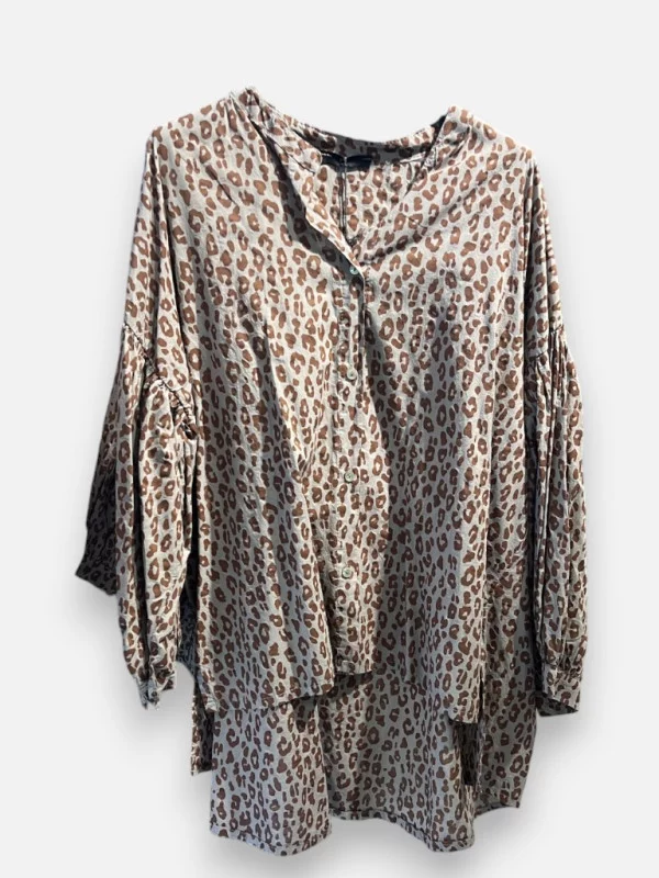 Faites ressortir votre cote sauvage avec la chemise Nano ! Cet imprime 'bebe leopard' est a la fois mignon et tres tendance, parfait pour donner du caractere a vos tenues. Sa coupe est longue a l'arriere, ce qui permet de camoufler les hanches avec elegance. C'est une chemise tres facile a vivre qui se porte aussi bien avec un jean bleu classique qu'avec un pantalon blanc pour un contraste chic. La chemise Nano est concue pour convenir jusqu'a la taille 46, offrant une belle aisance au niveau du buste et des manches. Vous pouvez la porter boutonnee de maniere classique ou legerement ouverte pour un look plus relax. Associez-la avec des lunettes de soleil chocolat pour un rappel de couleur parfait. C'est une piece indispensable pour celles qui veulent un look peps et branche sans effort. Une valeur sure pour toutes les occasions !
