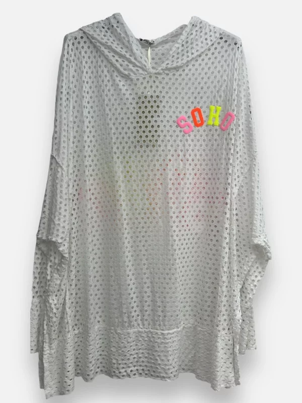 Le sweat Malinou est la définition même du confort stylé ! Ce modèle 100% coton se distingue par son travail de maille entièrement ajourée qui laisse deviner subtilement ce que vous portez en dessous. Doté d'une petite capuche pour le côté pratique et décontracté, il est parfait à superposer sur un petit t-shirt uni ou même sur une robe à brides pour les soirées fraîches. Sa coupe généreuse lui permet de s'adapter à toutes les morphologies, allant du 36 jusqu'à la taille 50. C'est la pièce facile par excellence, celle qu'on attrape sans réfléchir et qui donne tout de suite un look travaillé et moderne. Disponible en blanc éclatant pour un maximum de fraîcheur à 39 euros.