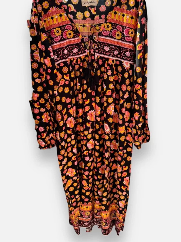 Succombez au charme de notre Robe Kiss, une véritable pépite issue de la prestigieuse collection San Coachella. Proposée à un prix exceptionnel de 79 euros, cette robe se distingue par ses imprimés colorés et sa coupe magistrale qui met en valeur toutes les silhouettes jusquà la taille 42. On adore ses petites lanières sur le devant qui apportent une touche subtilement sexy et moderne au décolleté. Confectionnée en rayonne, une matiäre ultra-douce et légäre semblable à la viscose des kimonos, elle offre un tombé impeccable träs agréable à porter. Attention les filles, il n'y a pas d'élastane dans ce tissu, donc privilégiez bien votre taille pour un confort optimal au niveau de la poitrine et des épaules. Disponible en plusieurs coloris tendance comme le moutarde vibrant, le turquoise estival ou le chic noir et blanc, elle est parfaite pour vos sorties. Portez-la avec un collier Ibiza pour parfaire ce look bohème irrésistible !