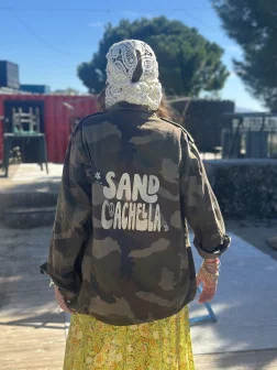 La Veste Vintage Sand est une pièce unique qui allie le caractère d'un imprimé militaire au raffinement de détails dorés. Cette veste en coton robuste mais souple arbore des motifs de camouflage revisités avec des touches d'or qui captent la lumière. Sa coupe structurée avec des poches fonctionnelles en fait une pièce aussi pratique que stylée. Elle s'adapte parfaitement jusqu'à la taille 44. C'est l'accessoire idéal pour apporter une touche rock à une robe longue fleurie ou un jupon vaporeux. Le contraste entre le kaki military et les imprimés bohèmes est la signature de la saison. Portez-la ouverte avec les manches légèrement retroussées pour une allure dégagée et moderne. C'est une édition limitée qui garantit une allure singulière à celle qui la porte.
