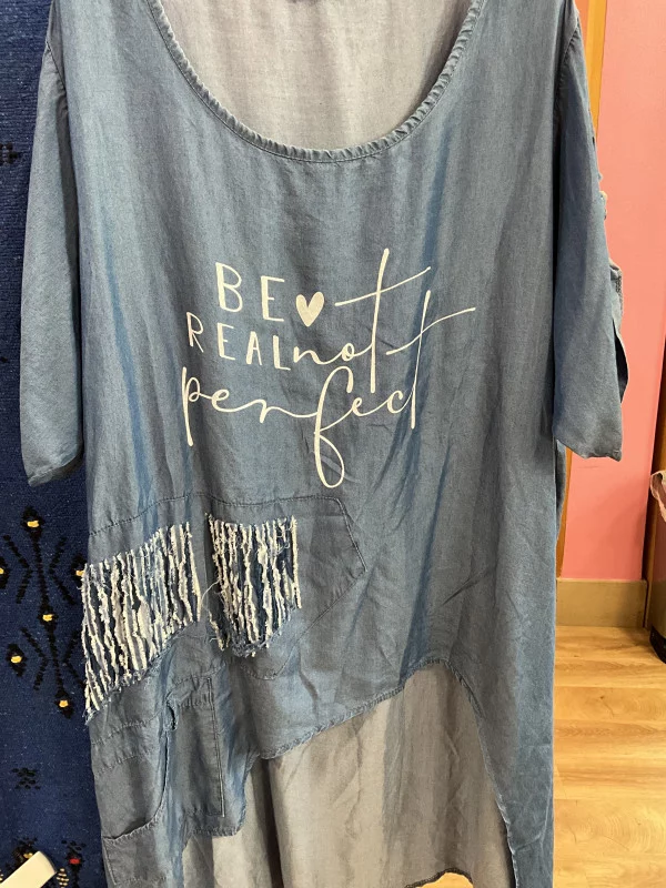 Laissez-vous séduire par la Tunique Rosa, la nouvelle pépite de chez Mona-Dress qui allie style et bien-être. Conçue dans un Tencel de qualité supérieure, une matière noble reconnue pour sa légèreté et sa capacité à réguler la chaleur, cette tunique est une véritable caresse pour la peau. Sa coupe ample et généreuse, mise en avant lors de notre live, offre une aisance parfaite même au niveau des bras, s'adaptant magnifiquement à toutes les silhouettes, du 36 au 48. On craque pour son message inspirant 'Be real not perfect' qui apporte une touche d'authenticité à votre look. Côté style, elle est d'une polyvalence incroyable : associez-la à un pantalon fluide en Tencel pour un ensemble chic, ou jouez la carte casual avec un short Carostar et des baskets. Que vous choisissiez de la porter avec une jupe en dentelle ou un jean ajusté, elle vous garantit une allure branchée et une liberté de mouvement totale. C'est la pièce idéale pour rester stylée sans effort tout au long de la journée !