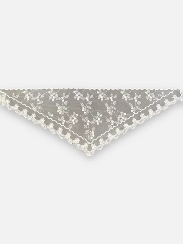 Le châle Élite est l'accessoire tendance qui fait fureur. Ce petit triangle de tulle fin, orné de broderies florales délicates, se décline en blanc, écru et jaune. Très polyvalent, il se porte aussi bien noué dans les cheveux pour un look rétro-chic, qu'autour du cou ou même attaché à l'anse de votre sac Saint Honoré. En live, nous avons montré comment il peut aussi se glisser dans un passant de jean pour une touche de féminité inattendue. C'est la petite pièce qui finit un look et apporte cette 'Mona Touch' unique. Léger et romantique, il évoque la douceur du sud et les vacances au soleil. À seulement 19 euros, c'est l'accessoire parfait pour s'amuser avec sa mode et personnaliser ses tenues quotidiennes avec poésie. Un petit détail qui change tout.