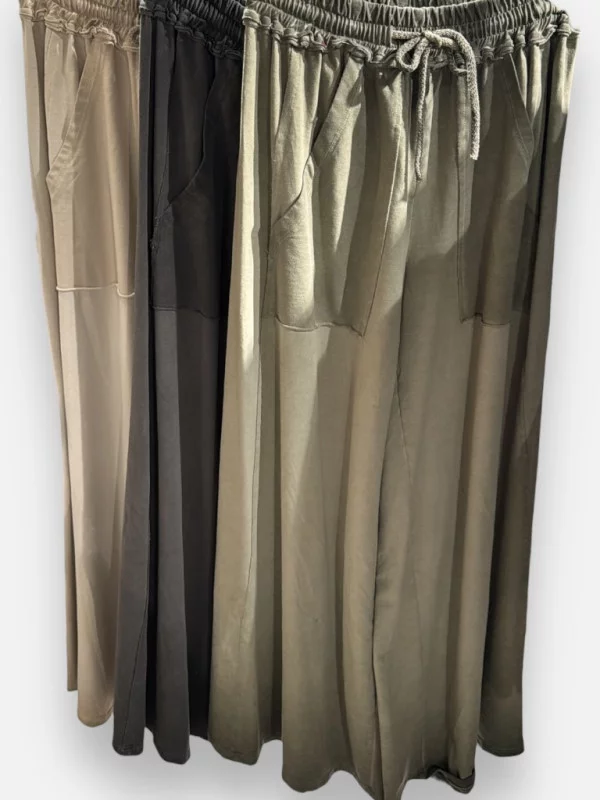 Mes chéries, voici le pantalon Mima de notre collection California Dream, une véritable pépite qui allie le style et l'aisance ! Réalisé dans un coton de qualité supérieure avec un fini éponge à l'intérieur, il présente un délavage stone-washé qui lui donne ce côté vintage irrésistible. Sa coupe est généreuse, fluide et hyper flatteuse grâce à sa taille élastiquée munie d'un cordon de serrage et ses poches plaquées à l'avant qui structurent la silhouette. On adore le détail tie-and-dye qui ressort magnifiquement sur les coutures. C'est le vêtement idéal pour aller travailler avec une petite paire de boots ou pour une balade sportive. Il s'adapte à toutes les morphologies jusqu'au 46 sans jamais mouler, vous permettant même de danser la salsa avec une liberté totale !