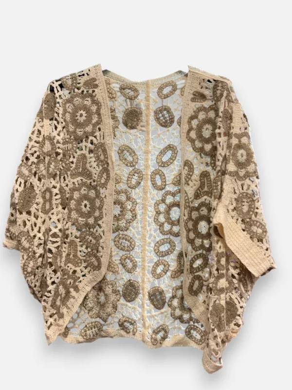 Le gilet Chacha est la version courte de notre célèbre gilet en crochet. C’est la pièce idéale à avoir dans son sac pour les soirées un peu fraîches ou pour habiller une robe sans manches. Son travail de crochet ajouré est fin et élégant, reprenant des teintes naturelles très faciles à assortir. Petite astuce mode : vous pouvez aussi le porter fermé comme un petit haut à même la peau avec un short en jean pour un look 100% festivalier ! Sa coupe ajustée convient parfaitement du 34 au 42. C'est une pièce polyvalente qui apporte immédiatement ce côté 'fait main' et authentique qu'on aime tant. Un indispensable du dressing estival !