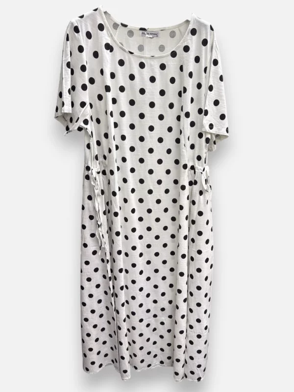 La Robe Alba est la version pensée pour sublimer toutes les morphologies, allant du 40 jusqu'au 52. Sa composition enrichie en lin lui confère cet aspect noble et respirant tant recherché en été. Visuellement, elle arbore de jolis pois noirs sur un fond blanc éclatant. Sa coupe est modulable grâce à un lien de serrage à la taille, vous permettant de la porter 'loose' pour un maximum de confort ou cintrée pour souligner vos courbes. Elle possède des poches pour le côté pratique. C'est une valeur sûre qui ne vous quittera plus, que ce soit pour une balade en bord de mer ou une sortie citadine. Disponible en deux paliers de tailles : ML et LXL.