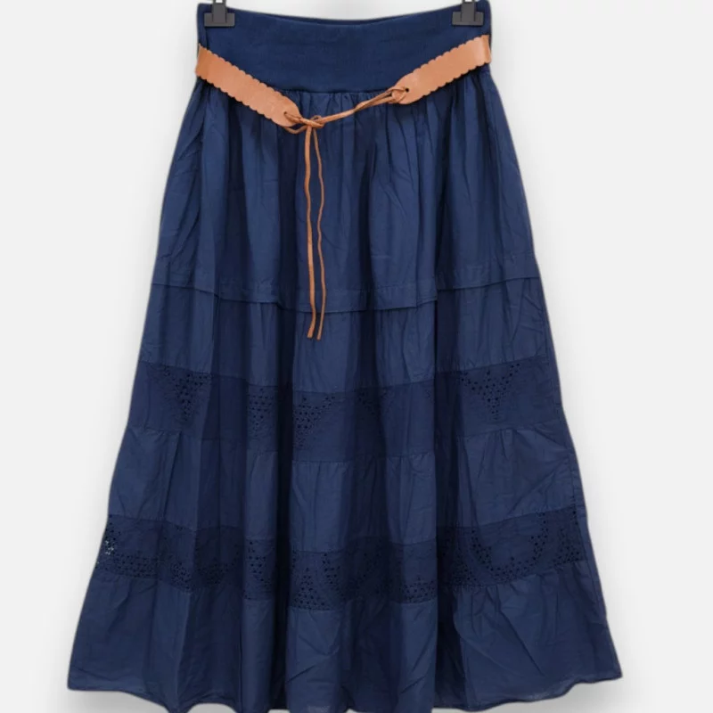 La Jupe Nini est l'incarnation du style bohème-chic. Entièrement réalisée en coton, elle est ornée de superbes broderies anglaises qui lui donnent un relief précieux. Pour votre confort et une opacité parfaite, elle est doublée d'un voile de coton frais. Sa taille est montée sur un jersey élastiqué très doux qui ne comprime pas et s'adapte du 34 au 44. Elle est livrée avec un petit lien de ceinture façon cuir pour parfaire le look. Disponible en blanc, marine, kaki, beige ou noir, elle se marie parfaitement avec un petit top à dentelle comme le Zanya. C'est la jupe idéale pour flâner en vacances avec une allure romantique et aérienne.