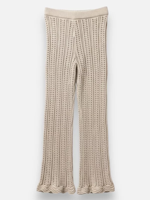 Le pantalon Crochet est l'incarnation même du style bohème cette saison. Son travail de maille ajourée rappelle le cannage traditionnel et offre un rendu visuel texturé et intéressant. Sa couleur écrue naturelle en fait une pièce facile à assortir pour des looks monochromes ultra-lumineux. Monté sur une taille élastiquée pour une aisance totale, il se porte aussi bien bas sur les hanches que remonté pour les plus petites. Sa douceur sur la peau est un pur bonheur, ce qui en fait un allié précieux pour vos escapades estivales. Associez-le à un petit pull en maille fine coordonné pour un ensemble harmonieux et sophistiqué qui ne manquera pas de faire son effet.