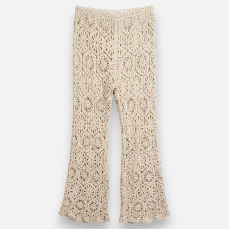 Le pantalon Alias est une invitation au voyage et à la fête. Ce pantalon en dentelle blanche ajourée incarne parfaitement le style bohème et 'peace and love'. Pour garantir votre confort et votre sérénité, il intègre un short de protection qui évite toute transparence indésirable au niveau du fessier. Sa coupe légèrement évasée vers le bas et sa taille haute offrent une silhouette allongée et élégante. Lors du live, nous l'avons conseillé pour des tailles allant du 34/36 au petit 40 afin de conserver la beauté du motif de la dentelle sans trop l'étirer. C'est la pièce idéale pour une cérémonie, un mariage ou une soirée d'été. Associez-le avec la chemise Olivia beige pour un total look bohème, ou avec une chemise en jean pour un contraste moderne. Un pantalon d'exception qui allie confort et féminité absolue.