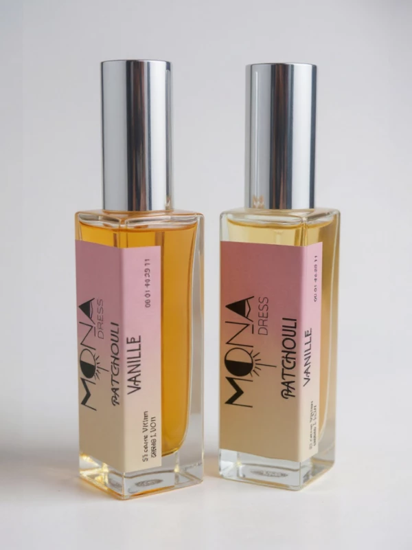 Et si votre parfum signature pouvait vous accompagner partout, en toute discrétion et élégance ? Découvrez notre nouvelle Eau de Parfum, une création Mona-Dress pensée pour les amoureuses des senteurs de caractère. Présentée dans un flacon en verre chic et épuré, son format a été spécialement conçu pour devenir le compagnon idéal de votre sac à main ou de votre bagage cabine. Fini les compromis lors de vos déplacements ! Nous vous proposons deux variations autour d'une note mythique : le Parfum Patchouli classique, boisé et envoûtant, pour celles qui aiment son authenticité brute ; et le Patchouli Vanille, où la chaleur du patchouli est adoucie par une pointe de vanille sucrée et gourmande, créant une fragrance plus ronde et précieuse. C'est le petit luxe à s'offrir ou le cadeau parfait qui fera plaisir à coup sûr, une attention délicate et personnelle.