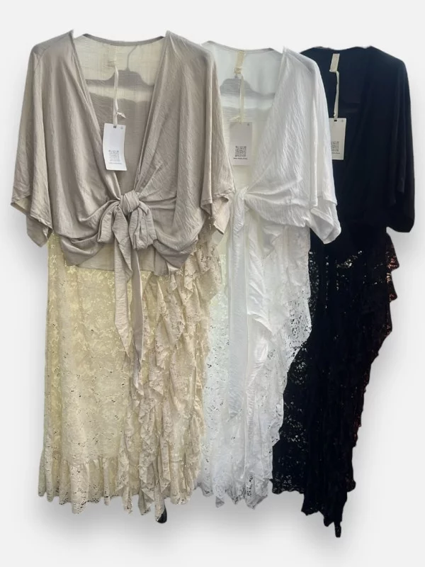 Mes amours, craquez pour l'ensemble Léana, une véritable pépite qui respire les vacances à Ibiza ! Cet ensemble deux pièces se compose d'une petite jupe volantée et d'un haut cache-cœur ultra-féminin façon boléro. Le grand secret de cet ensemble, c'est son shorty directement intégré sous la jupe : vous pouvez danser et bouger en toute sérénité, rien ne dépasse ! Le top est modulable, vous pouvez faire le nœud devant pour un style pimpant ou le croiser délicatement dans le dos. Disponible en blanc éclatant, noir chic ou beige naturel, il sublime instantanément les peaux bronzées. C'est la tenue parfaite pour vos soirées plage ou vos sorties estivales. Un look complet, frais et ultra-tendance qui s'adapte parfaitement aux silhouettes du 34 au 38.