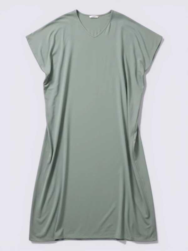 La robe Satin est la quintessence de l'élégance facile. Son mélange de viscose et rayonne offre un fini satiné luxueux avec un tombé lourd qui magnifie la silhouette sans jamais marquer les imperfections. On adore ses détails pratiques : des poches sur les côtés et une coupe généreuse qui convient parfaitement jusqu'à la taille 48. Disponible en or, bleu marine profond, noir ou kaki, elle présente une finition façon 'bord-côte' au niveau des manches pour un look moderne et décontracté. Son décolleté en V est juste ce qu'il faut de féminin. C'est la robe parfaite que l'on 'pose' sur soi pour être instantanément prête pour un événement, tout en se sentant aussi à l'aise que dans un pyjama de luxe. Une valeur sûre !