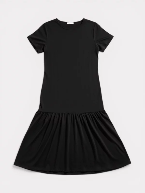 La robe Sandro est le compromis idéal entre confort et style. Proposée en marine, noir ou chocolat, elle est conçue dans une matière extensible qui épouse les formes tout en restant très agréable. Son bas volanté apporte du mouvement et de la légèreté à la démarche. C'est une robe qui peut se porter de manière très décontractée avec des petites baskets ou des mules, mais qui se transforme totalement avec une paire de talons et des bijoux dorés. Notez qu'elle a tendance à bien mouler le corps, ce qui sublime la silhouette jusqu'à la taille 40/42. Une pièce facile à vivre, infroissable et indispensable dans votre valise de vacances. Elle fait fureur auprès de toutes nos clientes grâce à son petit prix et sa coupe impeccable !
