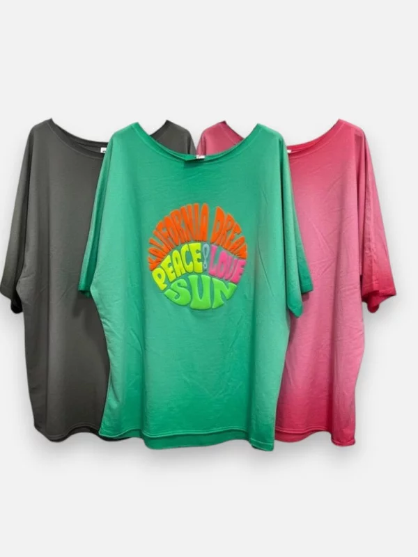Le T-shirt Sun de California Dream est une explosion de bonnes ondes. On adore son lettrage 'Sun' et 'Peace and Love' réalisé en gomme texturée qui apporte un relief moderne et original. Sa coupe spécifique sans couture d'emmanchure assure un confort total et une souplesse de mouvement rare, s'adaptant parfaitement jusqu'à la taille 46. Disponible en vert kiwi, gris chiné ou rose, il est idéal pour réveiller vos basiques. Son coton italien de haute qualité est respirant et très agréable sur la peau, parfait pour les températures printanières. Associez-le à un baggy coloré pour un look total California Dream ou à un simple jean pour un style décontracté et lumineux.