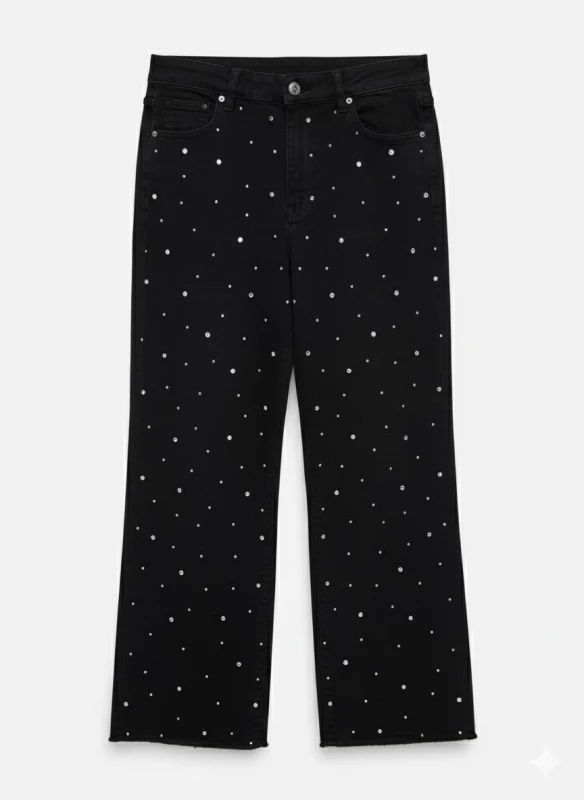 Description : Jean droit confortable et stylé, rehaussé de strass pour une touche de glamour au quotidien.