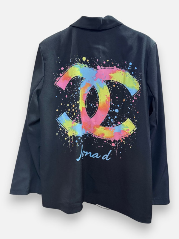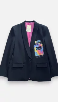 Le blazer Paix D est bien plus qu'une simple veste de costume : c'est une pièce de créateur issue de la capsule exclusive Monadresse. De face, elle présente une coupe tailleur classique et impeccable avec un col châle élégant et des épaulettes qui structurent la carrure avec force. Mais la magie opère réellement au dos, où s'affiche un motif 'Peace' coloré et graphique, véritable signature mode. Entièrement doublée d'un tissu satiné rose pimpant, cette veste offre une finition 'couture' jusque dans les moindres détails ; n'hésitez pas à rouler les manches pour laisser apparaître cette touche de couleur ! Elle dispose de deux vraies poches fonctionnelles sur le devant. Ce blazer se mixe à l'infini : sur un jean pour casser le côté formel ou sur un pantalon blanc pour un total look lumineux. C'est la veste idéale pour celles qui souhaitent se démarquer avec élégance et afficher un message de paix avec style. Une exclusivité à ne pas manquer !
